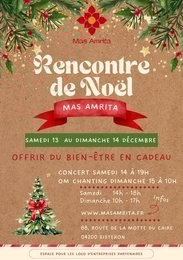 Réserver votre week-end du 13 et 14 décembre, rencontre de Noël au Mas Amrita.
