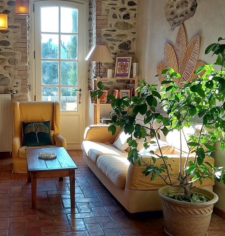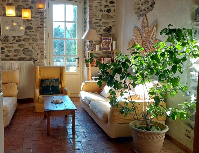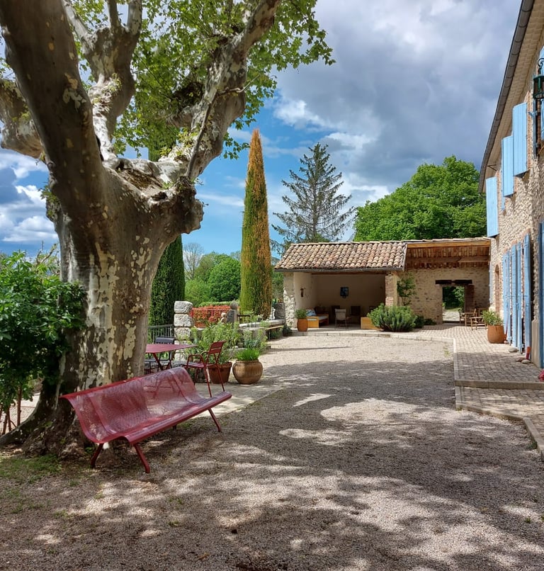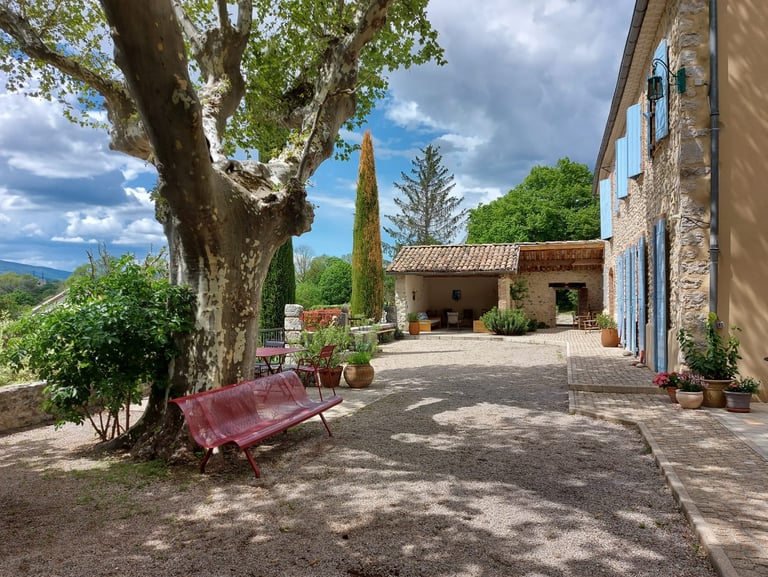 Nichée au cœur de la nature, cette ancienne bâtisse familiale a été aménagée en un lieu d'accueil chaleureux, mettant en valeur les galets de la Durance.